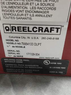Reelcraft TW841000 OLPT Gas Welding Hose Reel. 1/4" ID x 100ft Twin Line Welding Hose.